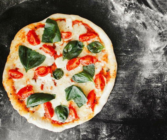 Homemade tomato sauce, mozzarella, gorgonzola, goat cheese, parmesan, cheery tomatoes, oregano